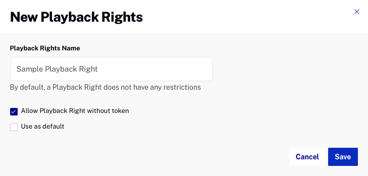 - Checking Allow Playback Right without token will allow playback requests to be made without a JSON Web Token (JWT).