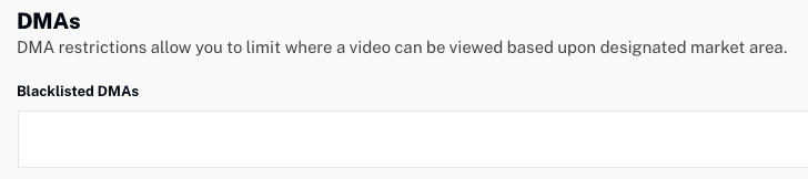 - Select to allow viewing for all and then add a list of blacklisted countries, zip codes, IPs and DMAs that are prevented from viewing