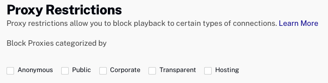 Proxy restrictions allow you to limit video playback based upon certain types of connections. To assign proxy restrictions to a playback right, follow these steps: