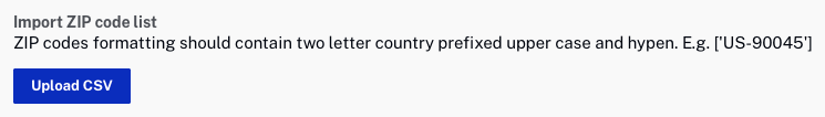 It is also possible to upload a .csv file containing zip codes. Click Upload CSV to browse and select a file to upload.