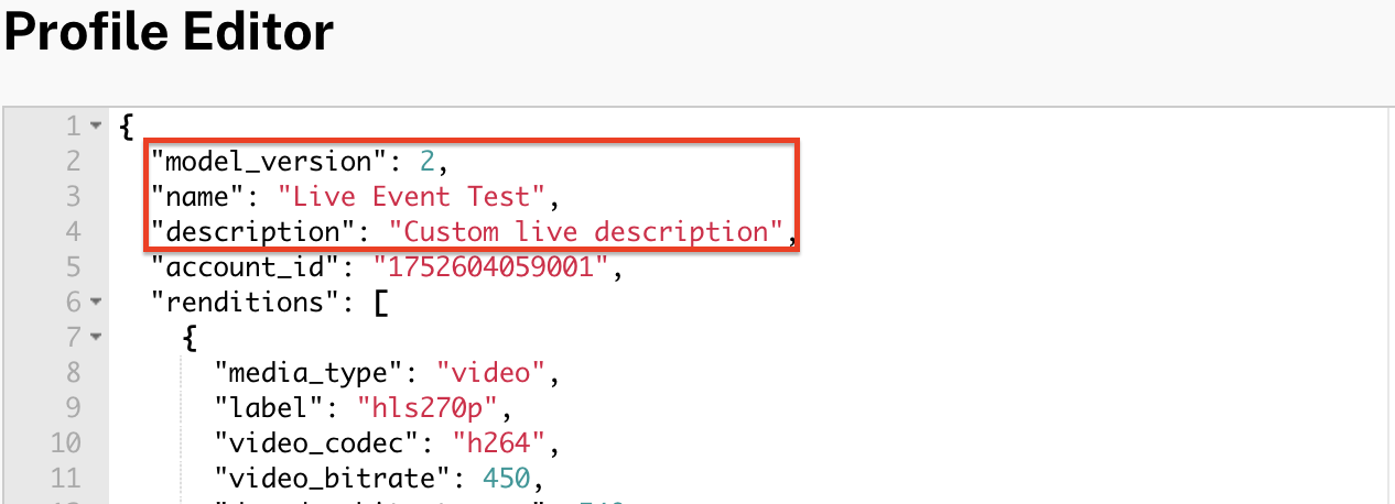 element to give the profile a meaningful name. This name will be displayed inside Video Cloud Studio. - Edit the