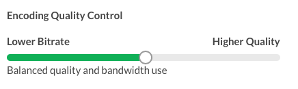 - Adjust the Encoding Quality Control to adjust the video quality and bandwidth use. If you are more concerned about bandwidth usage and wish to optimize for lowest bandwidth consumption, move the slider to the left. If you are more concerned about quality and are okay with potentially using more bandwidth to deliver better picture quality, move the slider to the right.