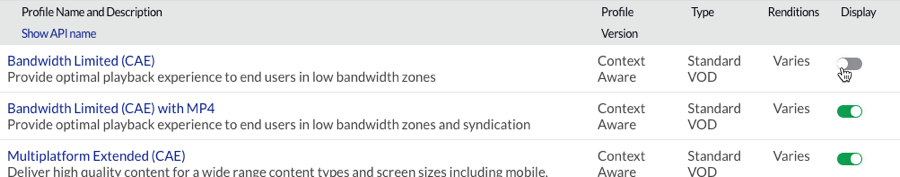 Ingest profiles contain the transcode settings that will be used when videos are uploaded using the Upload module or the Dynamic Ingest API. The ingest profile editor that is displayed will change based upon the transcoding options that have been configured for the account.