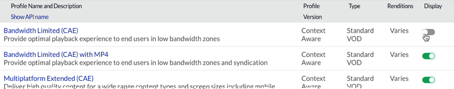 - Profile Version - Indicates the type of transcoding that is used. Note that the types that appear are based upon how your account is configured: