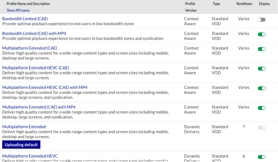 - Standard VOD - Indicates that this is a default profile provided by . This type of profile can't be edited or deleted.
