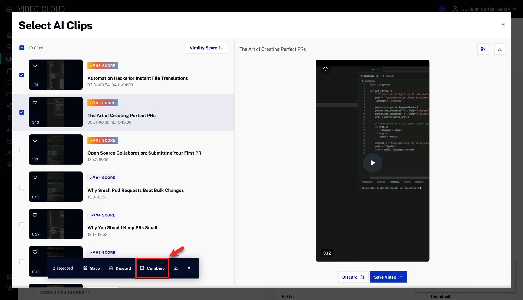Selecting and modifying AI Clips