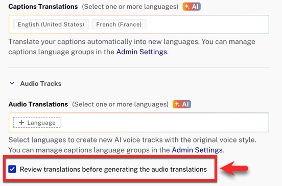 (Optional) You can enable the review checkbox to pause dubbing until after you review your translated captions.