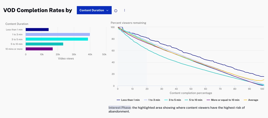 : Analyzes completion rates based on the length of the content, helping you understand how duration affects viewer retention.