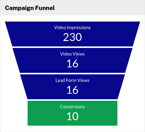 The Campaign Funnel displays metrics for videos in Campaign-enabled players with Campaign lead forms for the selected time period:
