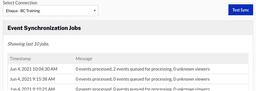 - The status of your view event will be queued. It may take 15 minutes or so for the data to actually sync to Eloqua. Once the data does sync, the status will change to one of two statuses: