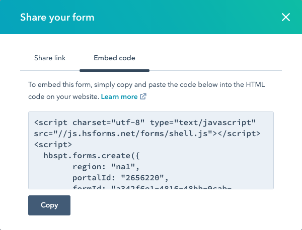 Copying and editing the form embed code