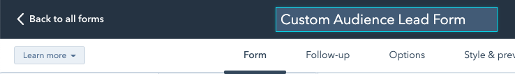 - Give the lead form a descriptive Name.