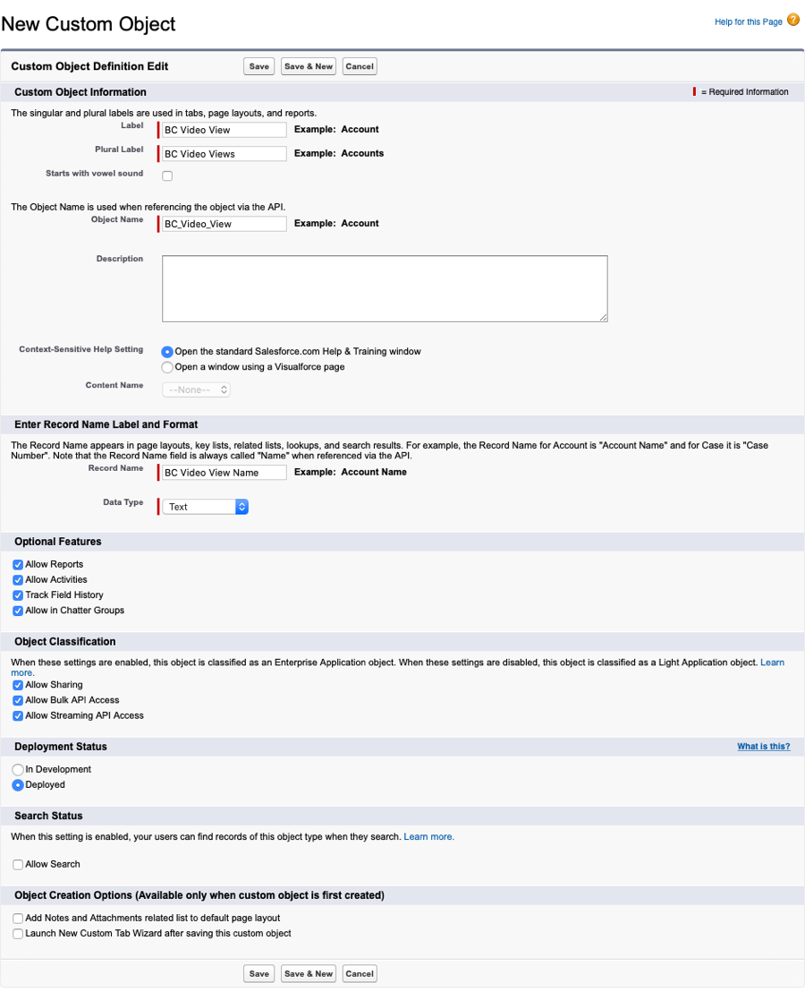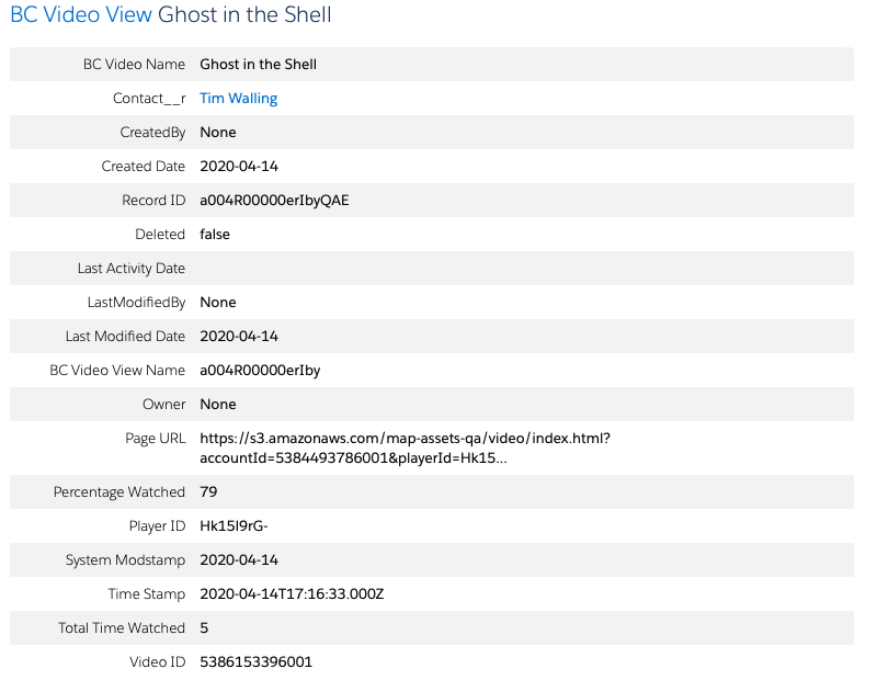 This will associate the BC Video View custom object with a Contact in Salesforce.