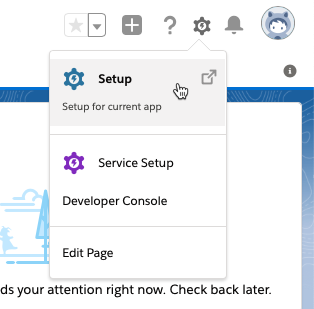 - Click on the gear icon in the top right corner to open the Setup menu.