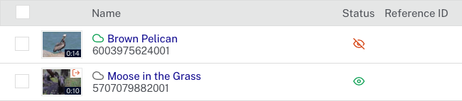 The Media module will display a green cloud icon () next to video titles that have been ingested using a Dynamic Delivery or Context Aware ingest profile. Videos ingested using a legacy ingest profile will display a grey icon (