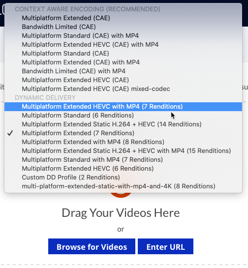 Context Aware Encoding requires an additional fee. Contact your Customer Success Manager about bundling Context Aware Encoding to get the optimum set of renditions for your videos.