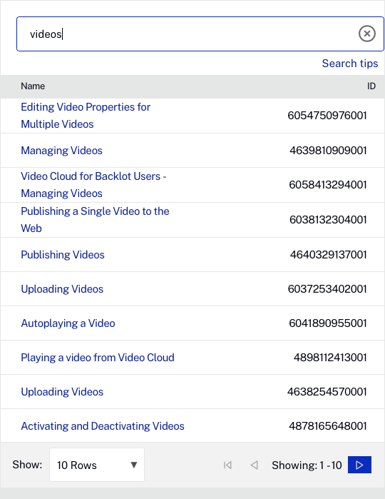 The search field at the top of the page can be used to search for a specific video.