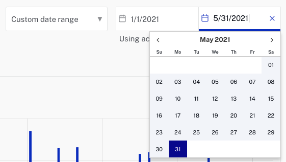- To specify the time period for the report, use the date selector at the top of the page.
