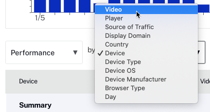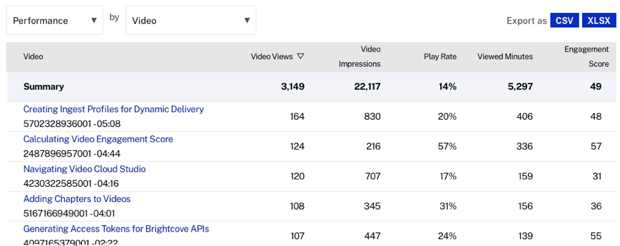 - Select to view the Performance by Video dimension.