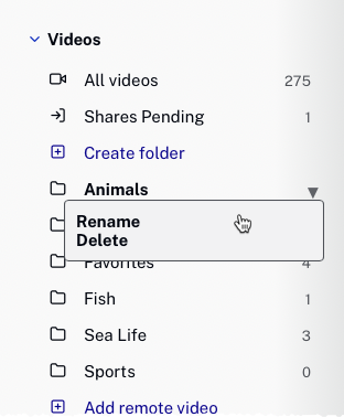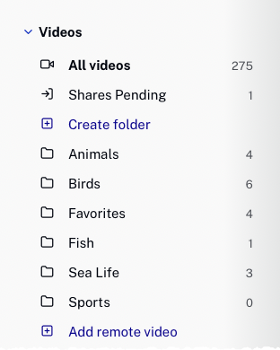 All folders will appear in the left navigation. The number after the folder name is the number of videos in the folder.