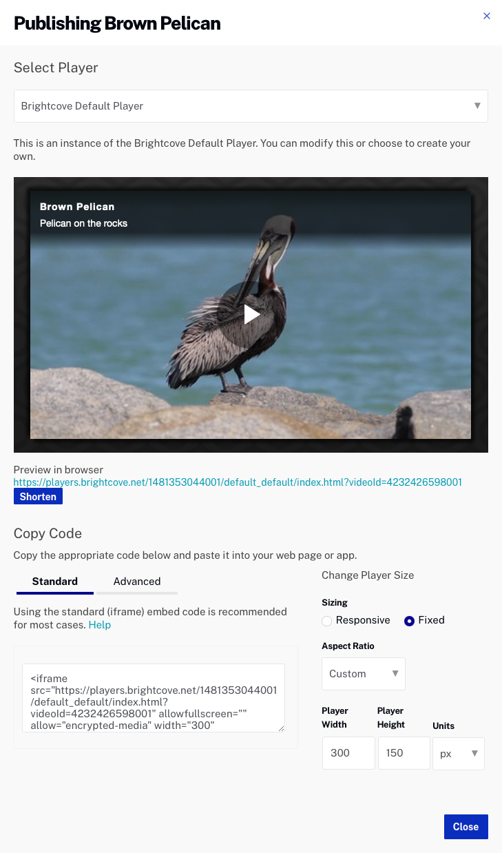 - Click the URL below the preview player to open it in a new browser tab. Confirm that the video appears and can be played.
