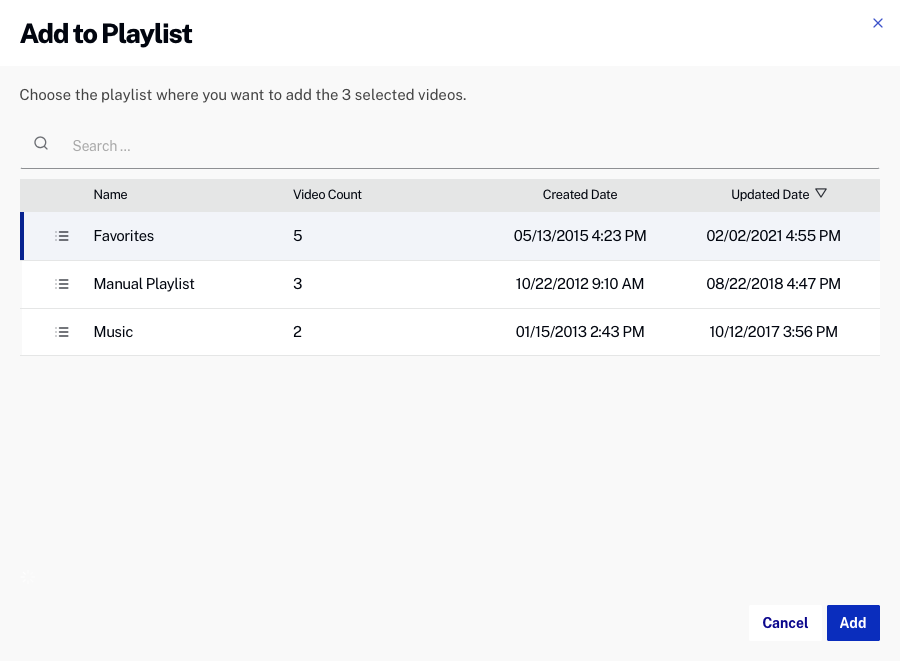 - Click the checkbox next to videos you want to add to the playlist.