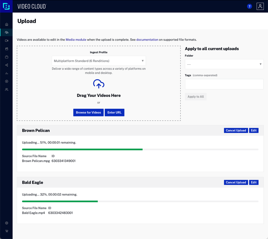 Upload local videos to Video Cloud