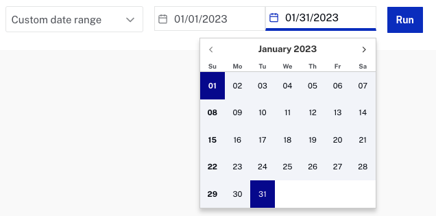 - Use the date selector to specify the time period for the report, you can select a fixed date range or select a custom date range.