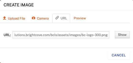 Brightcove recommends following your normal workflow. If you usually upload images for your website or other content to a third-party system like Amazon S3 or WordPress, continue doing that. If you normally upload directly from your system, then simply use the Upload File option.