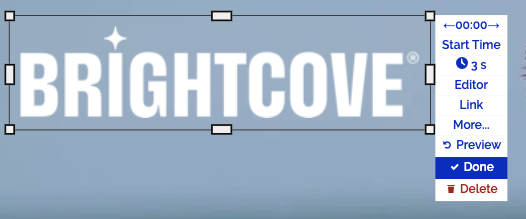 Image overlays are used to display an image on a video during playback. The overlay can also be clickable and open another browser page when clicked. In the following example, the image overlay (the Brightcove logo) will appear at the 75% point of the video and display until the end of the video. Clicking the overlay will open a link (www.brightcove.com) in a new browser tab and pause the video.