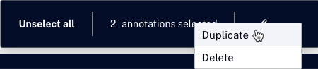 To delete an annotation, click the action menu (...) and then click Delete. To duplicate multiple annotations: