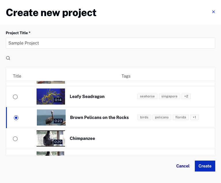 - Select a video to use in the project.
