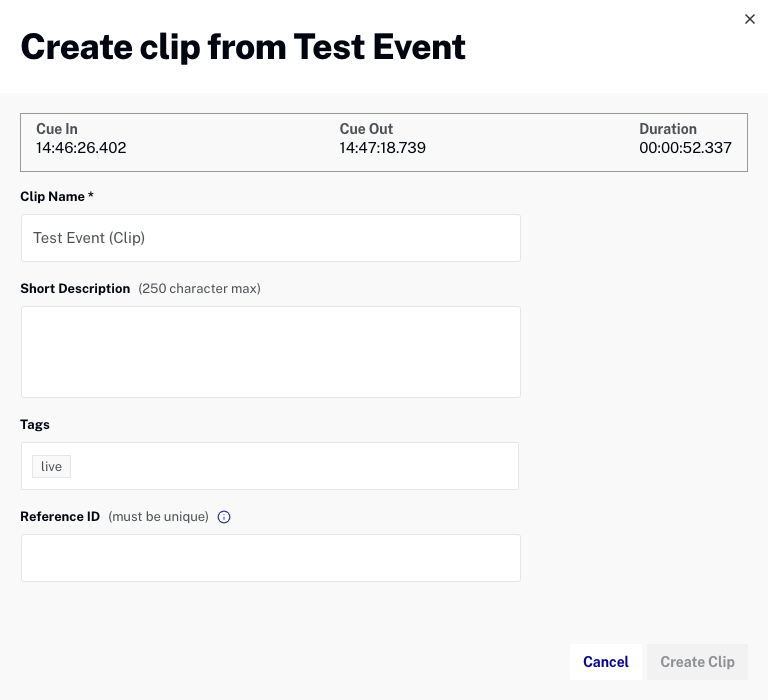 The Live module provides the ability to create video clips from completed events. Clips can also be created while a live event is in progress. There are several reasons you might want to create a clip: