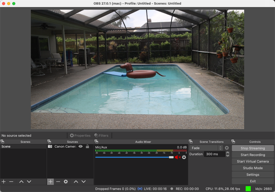 - In the Controls section, click Start Streaming. The live stream should begin.