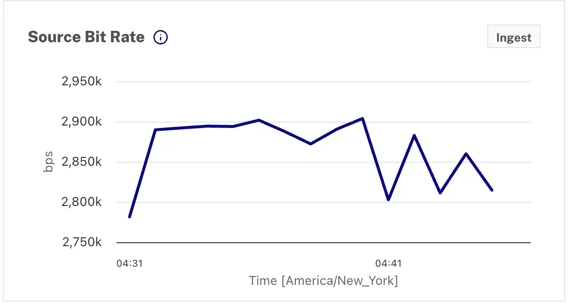 - Network Traffic Out - Rate of network traffic out of the encoder. This number includes all traffic from the encoder — the media output, NTP traffic, and DNS traffic. Even when the encoder is not delivering output, there will be some traffic.