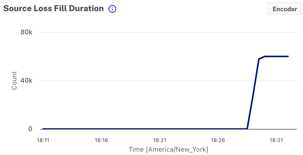- Source Loss Fill Duration - Duration in milliseconds of fill frames, black slate or last frame repeated, used to cover source loss. Capped to 60K ms (1 minute).