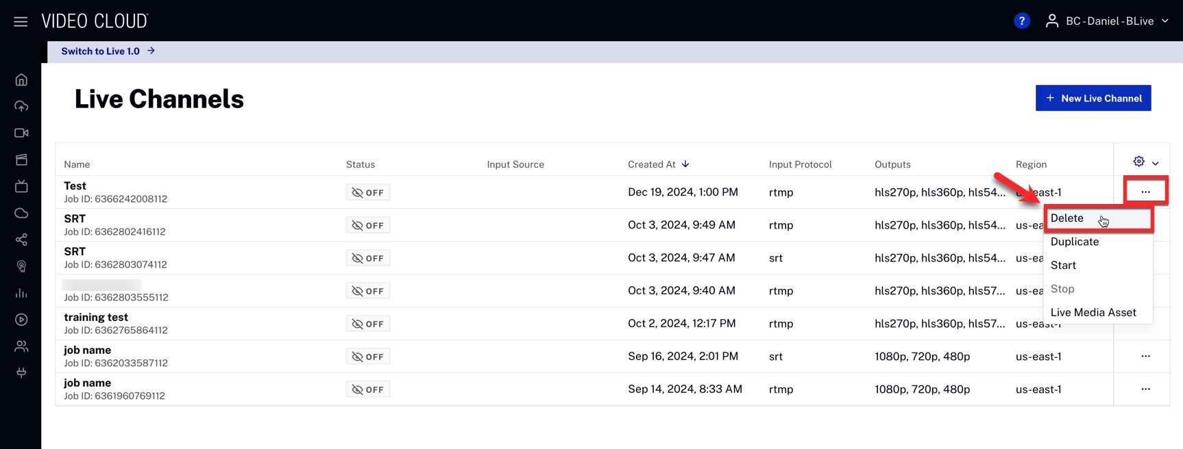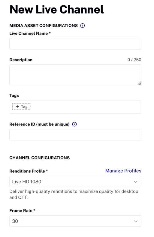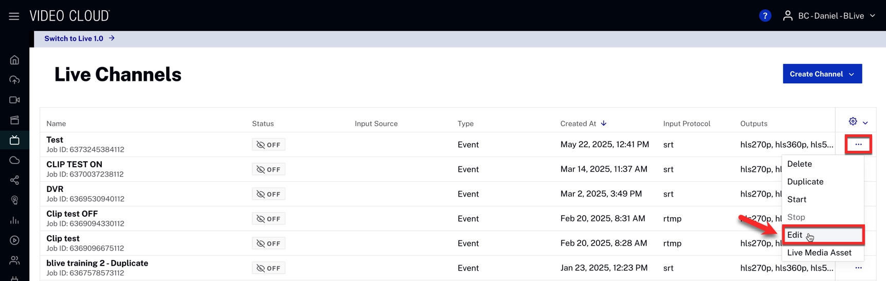 • Live Media Asset - Click Live Media Asset to view the live channel video properties.