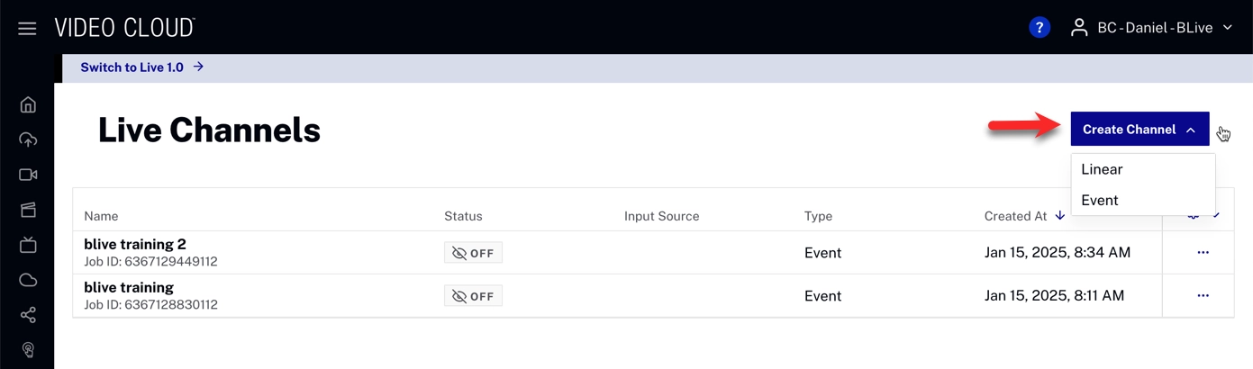 Typically, event channels are created to stream shorter-length, one-time, or recurring events. Linear channels are typically used when delivering 24/7 live channels. Linear channels and events channels are billed differently - check with your Customer Success manager for details.