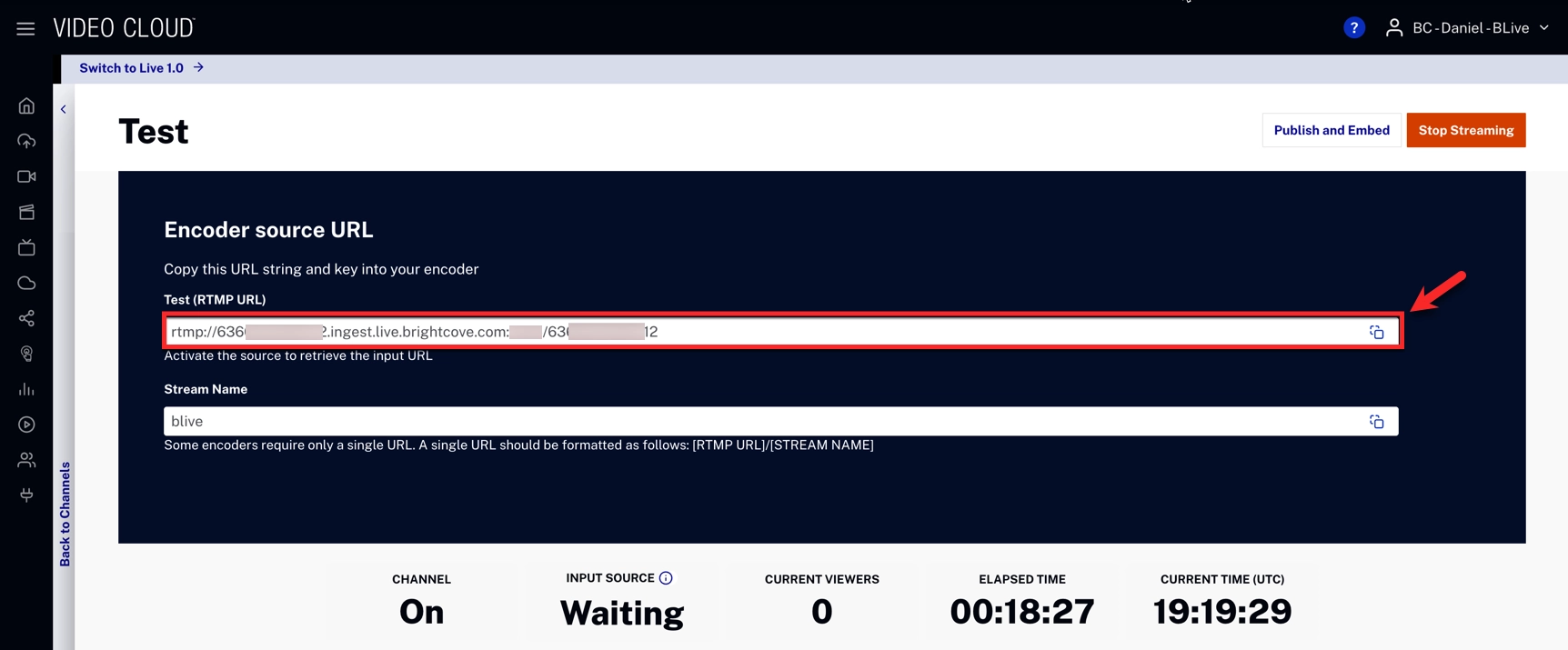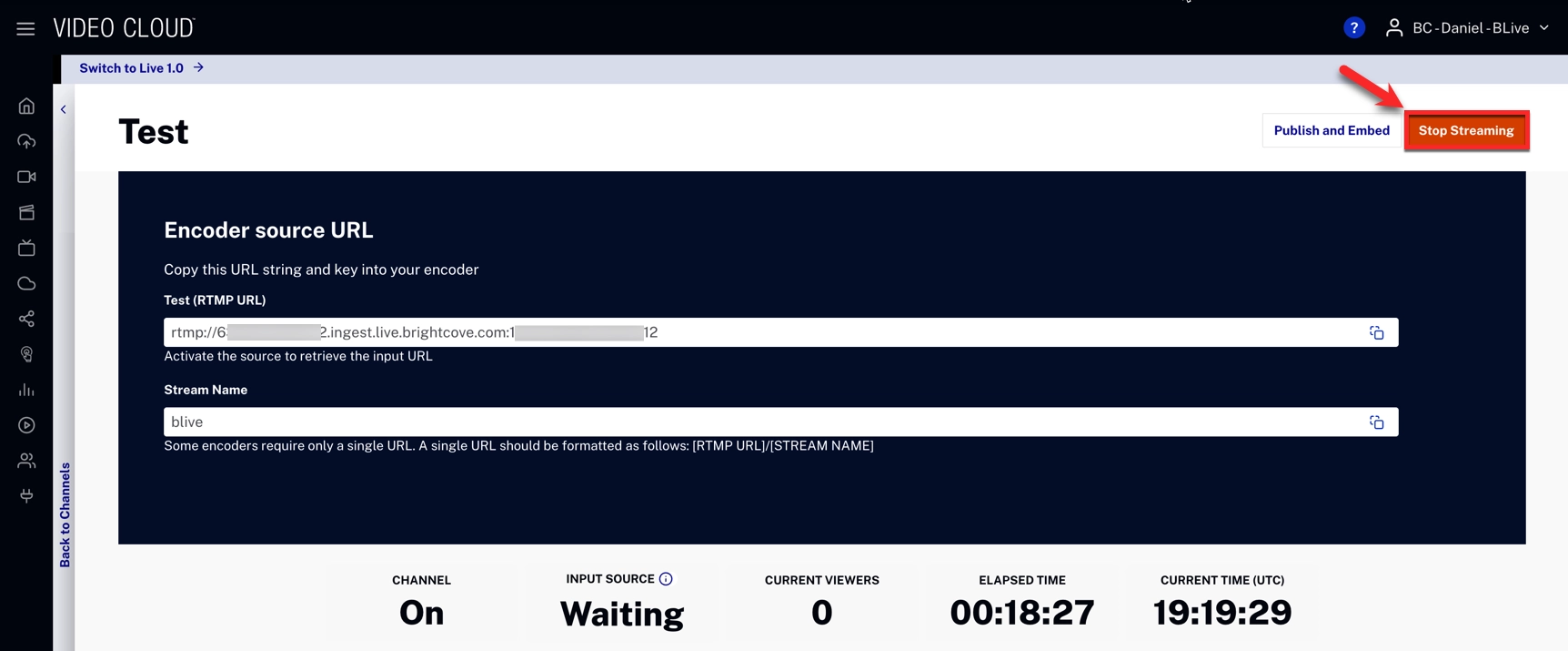 5. Click Start Streaming. The channel will start, and the URL will be generated. This may take more than a minute.