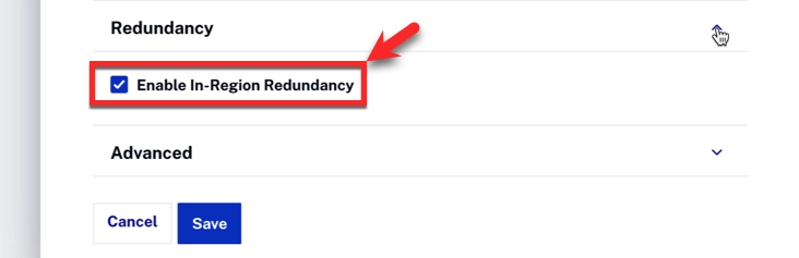 While Creating a New Channel, scroll down to the Redundancy section and select Enable In-Region Redundancy.