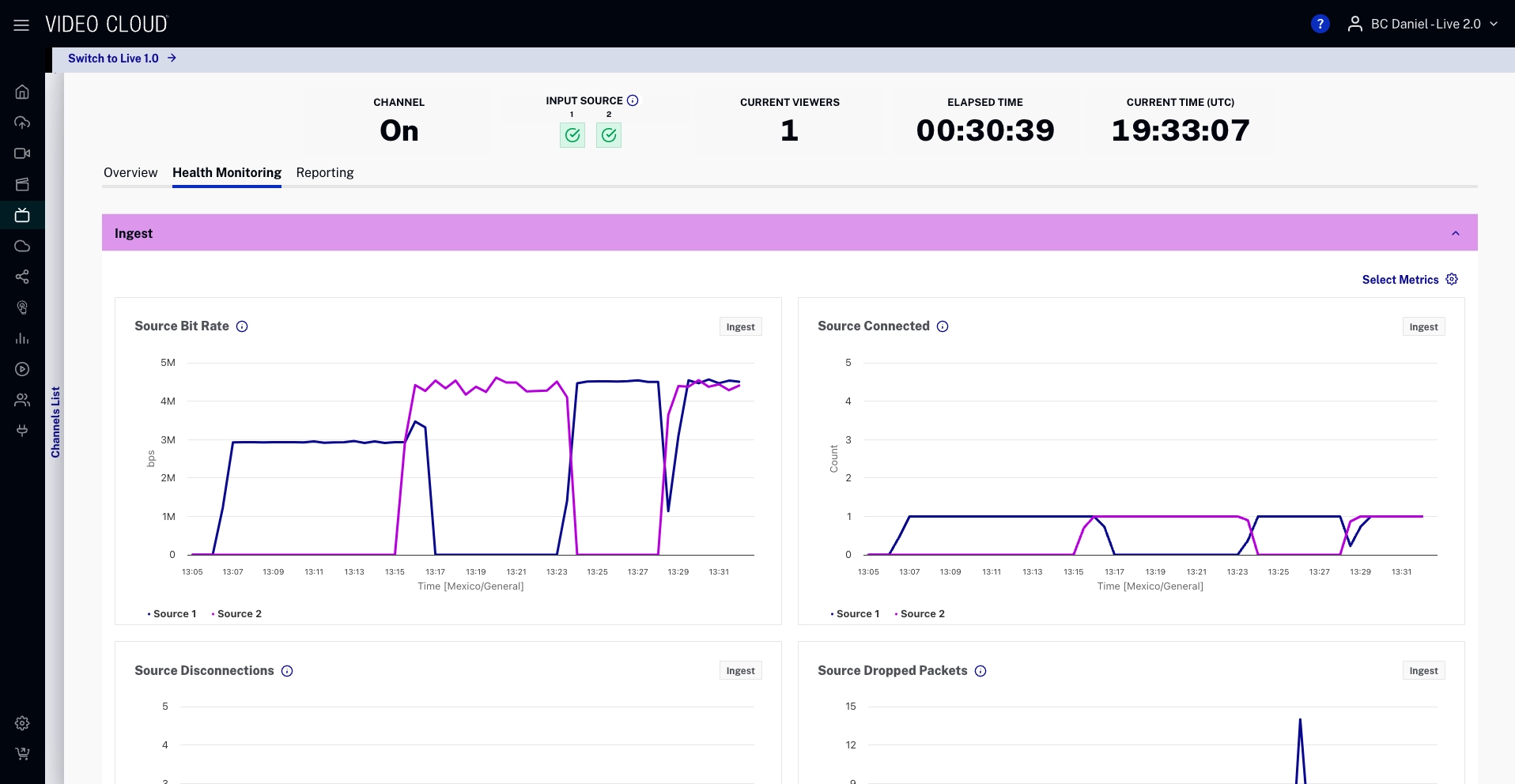 Click the Health Monitoring tab below the preview player to view monitoring information for both streams simultaneously.