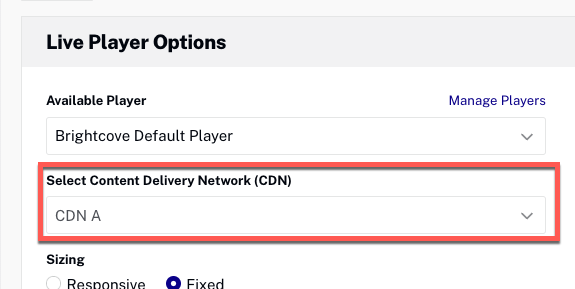 - Select Content Delivery Network (CDN). This option is used to select a specific CDN in case the Live Job was configured for Multi-CDN. It should look similar to this: