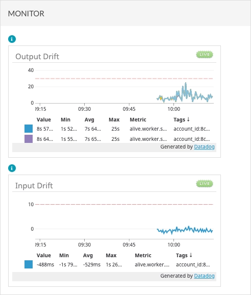 Input Drift measures the health of the input stream and is defined as the difference from the input timestamp and the real time clock.