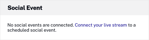 The Social Event section will display information about the scheduled social event the live stream is assigned to, if any.