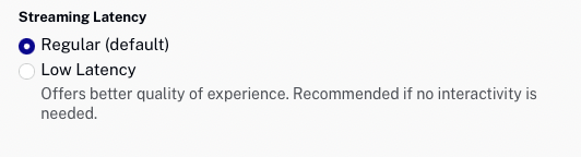 - Low Latency - Live delay reduced to approximately 5-10 seconds (see the Using Low Latency streaming section below)