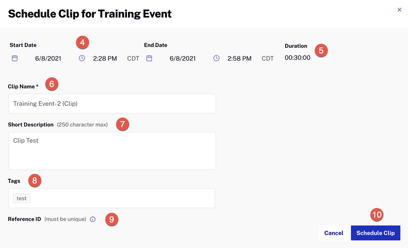 - A modal window will appear. Select the Start Date and Time and the End Date and Time