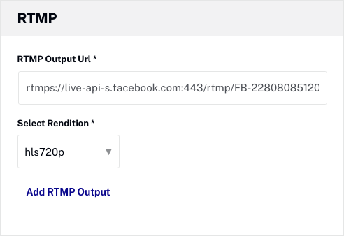 In this topic you will learn how to use RTMP outputs in the Live module to stream live events to destinations such as Facebook and YouTube.
