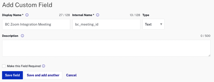 - For the Internal Name field, you should use: bc_meeting_id