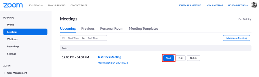 - Click the blue Start button to start your meeting.