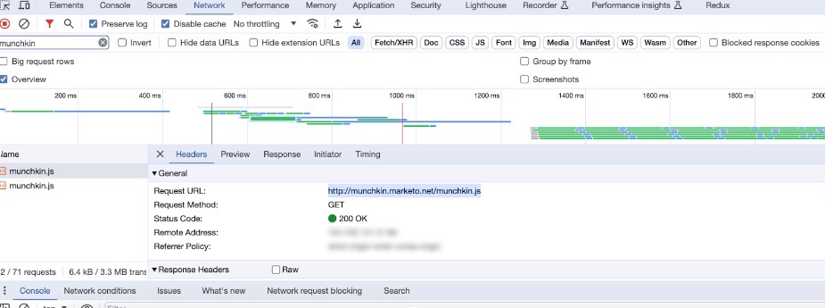 Ensure at least one call to the Marketo.com-hosted munchkin.js file is present.